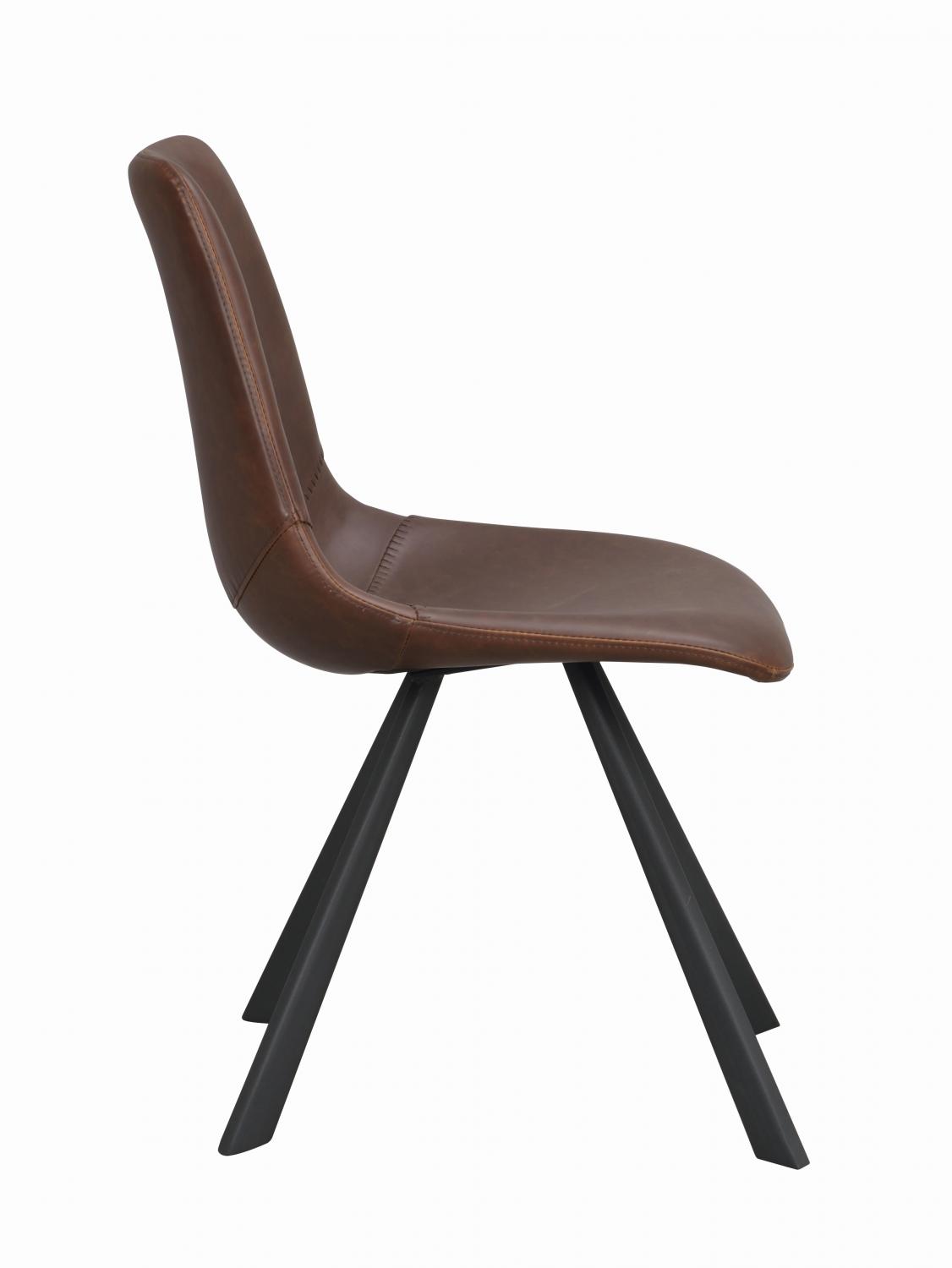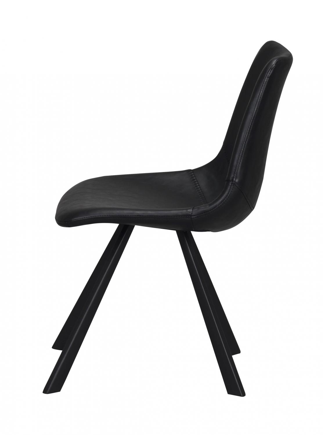 Auburn stol med svart konstlädersits och svarta metallben. Sitsen har dekorativa sömmar och hög sittkomfort. Metallbenen är lätt utställda i pulverlackerad svart metall. Stolen finns också som barstol för en matchande helhet.