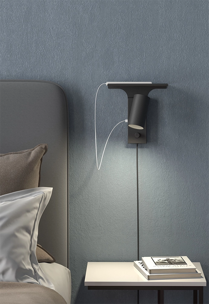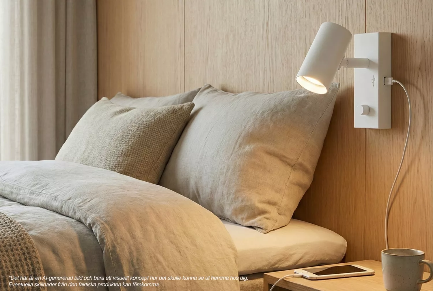Tyson vägglampa med USB-port är en stilren och funktionell belysningslösning som kombinerar modern design med praktisk vardagskomfort. Lampan passar utmärkt som sänglampa, läslampa eller som kompletterande belysning där du vill ha både riktat ljus och smidig laddning nära till hands.