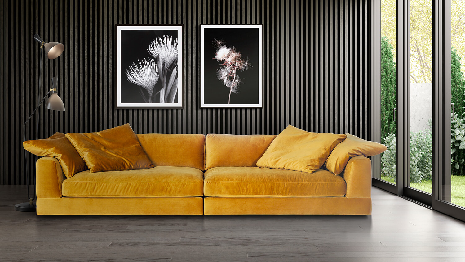 Infinity är soffan för dig som vill ha det där lilla extra. Med ett generöst djup på 120 cm och en längd på 284 cm är den gjord för avslappnade filmkvällar och skönt häng. Sittdynan? En lyxig mix av rivet skum och sjöfågelfjäder som formar sig perfekt efter dig. Klädd i det mjuka sammetstyget Juke och med fyra matchande kuddar (precis som på bilden!), är den lika skön som den är snygg.