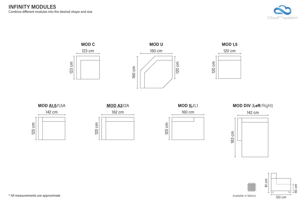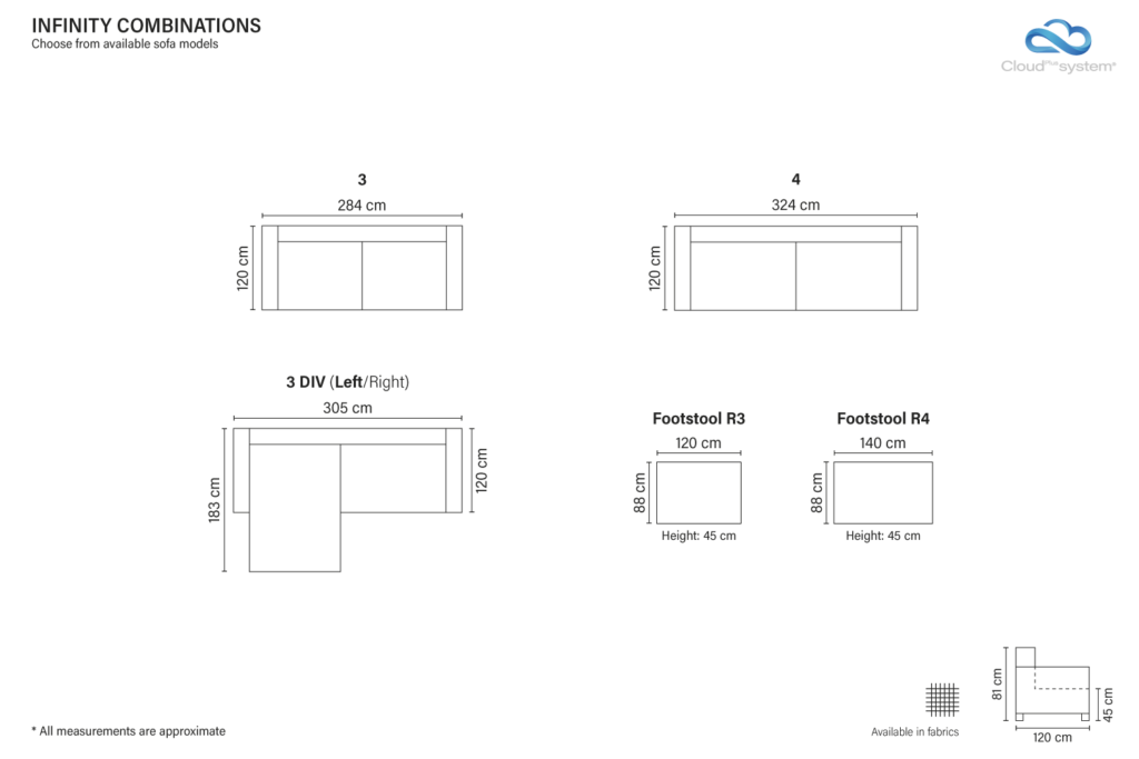 Vill du ha den i en annan stil? Inga problem! Infinity finns i flera varianter och mängder av tyger – skräddarsy den nästan precis som du vill.