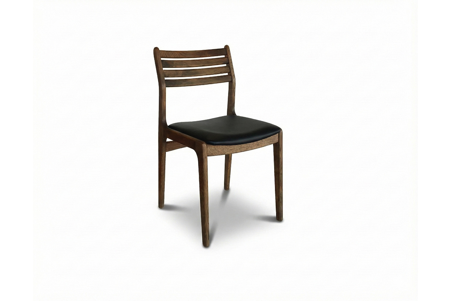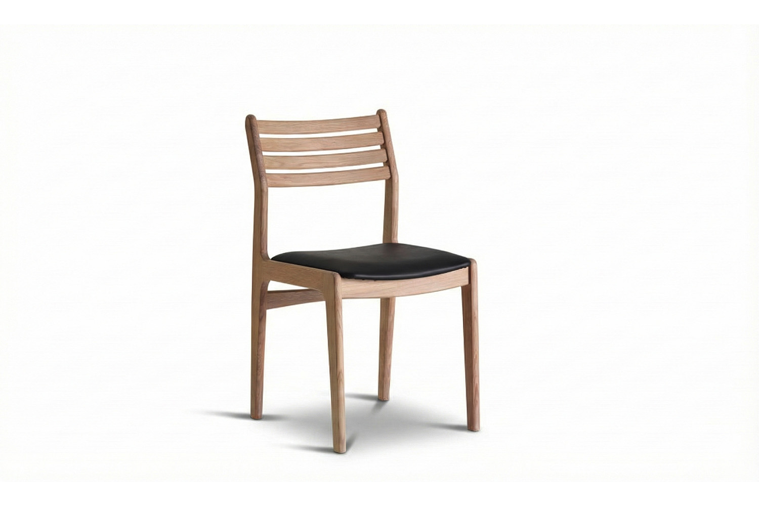 Anne är en elegant och bekväm matstol i ek med lädersits. Modern design med luftig rygg. Finns i flera oljade utföranden samt som karmstol.