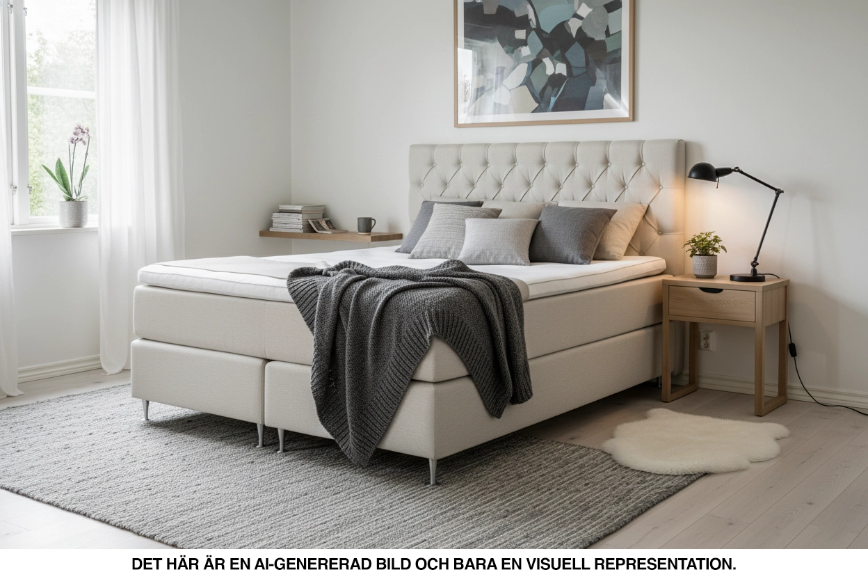 Komplett kontinentalsäng inkl. bäddmadrass och huvudgavel från Classic Beds. Nu täcke och kudde på köpet!