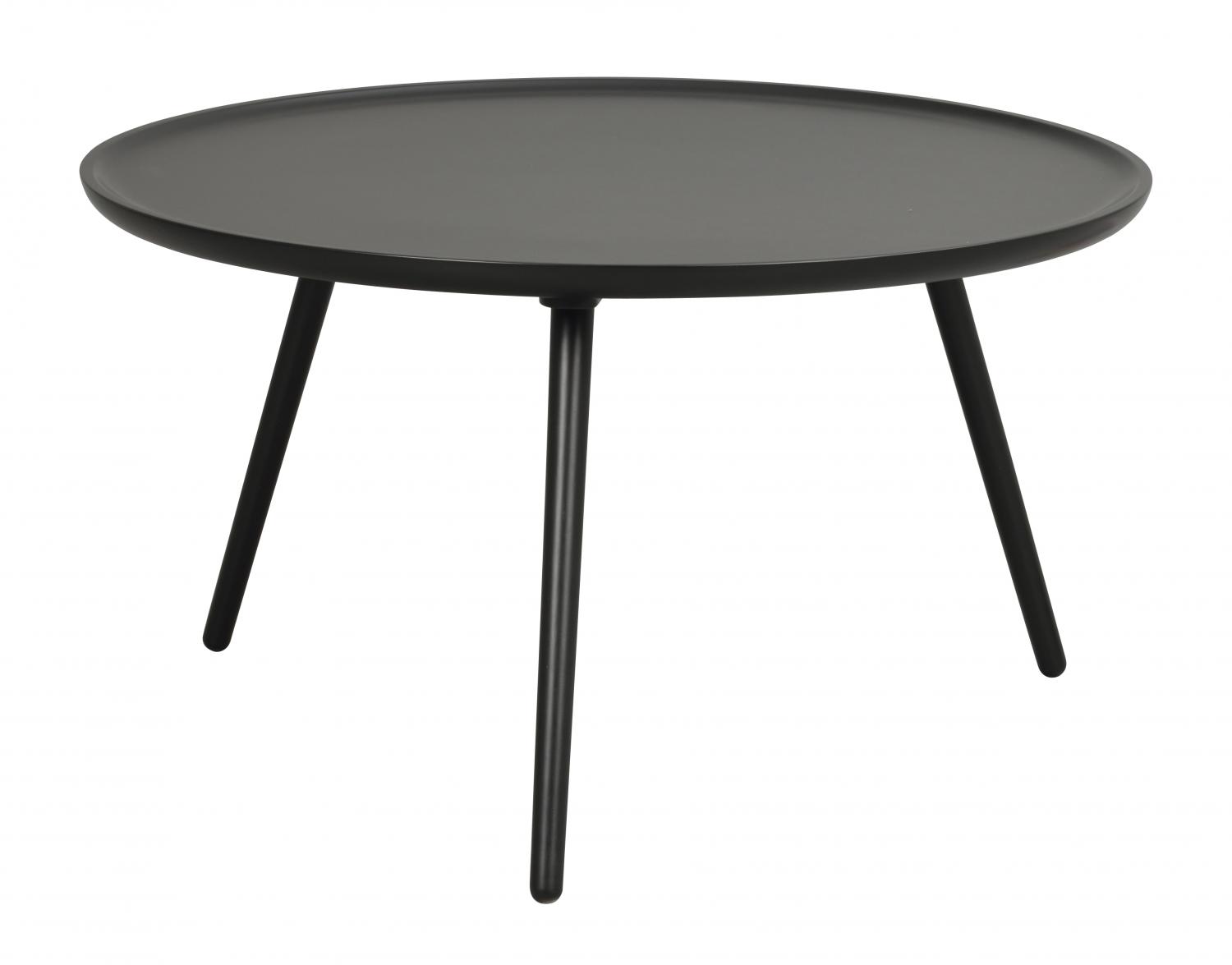 Daisy soffbord i svartlackat trä. Enkelt och stilrent soffbord i mindre modell med tre ben. Urfräst toppskiva som ger en snygg lätt skålad känsla. Soffbordet ingår i vår serie Daisy.