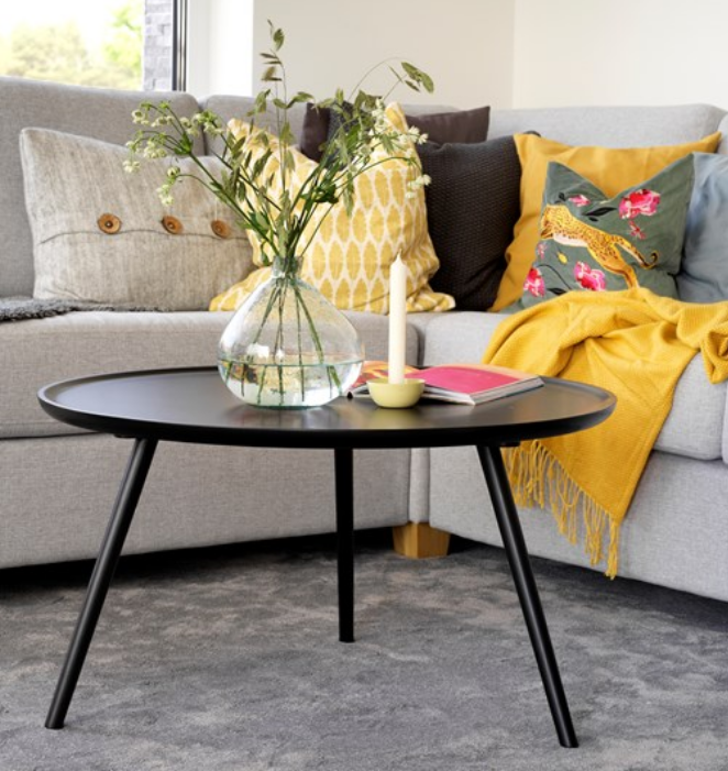 Enkelt och stilrent soffbord i mindre modell med tre ben.