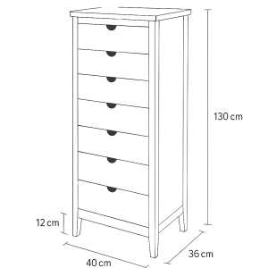 Med sina 40 cm i bredd och 129 cm i höjd är Klinte en hög och smal byrå som passar utmärkt i mindre rum, trånga utrymmen eller som smart förvaring i hallen, sovrummet eller walk-in-closeten. Den kompakta designen gör att den tar minimalt med plats – men rymmer desto mer.