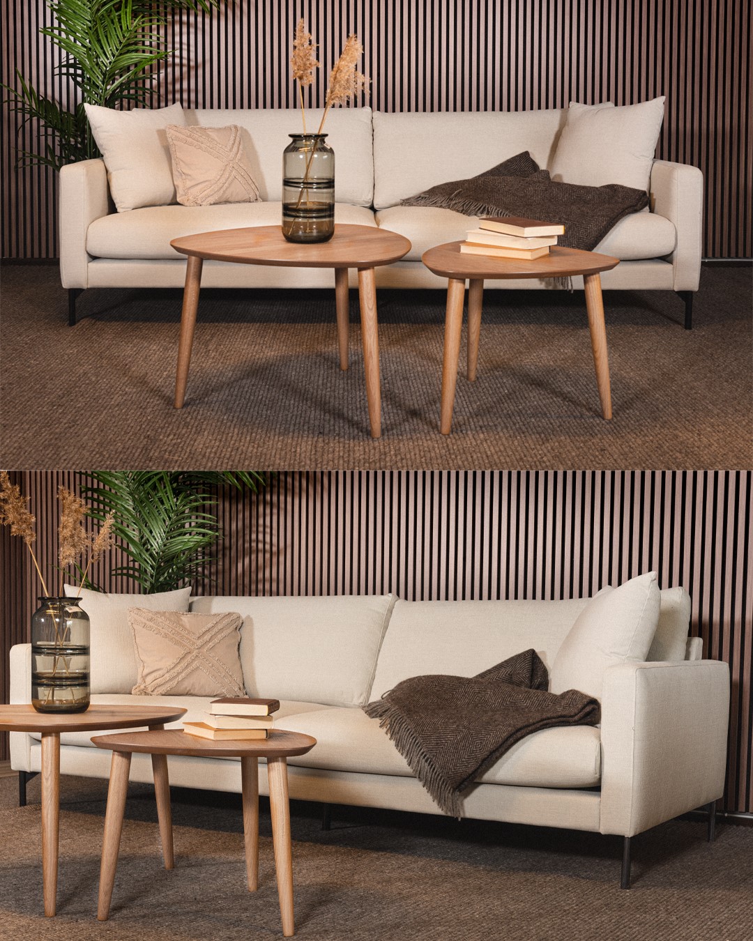 Båstad 4-sitssoffa har en generös sittbredd och två bekväma sitsar som ger gott om plats för avkoppling och social samvaro. De mjuka stoppningarna i sitsarna och ryggkuddarna gör att du kan sjunka ner och njuta av en hög komfort. Soffan har även en stabil ram i trä som är konstruerad för att hålla länge och behålla sin form även vid daglig användning.