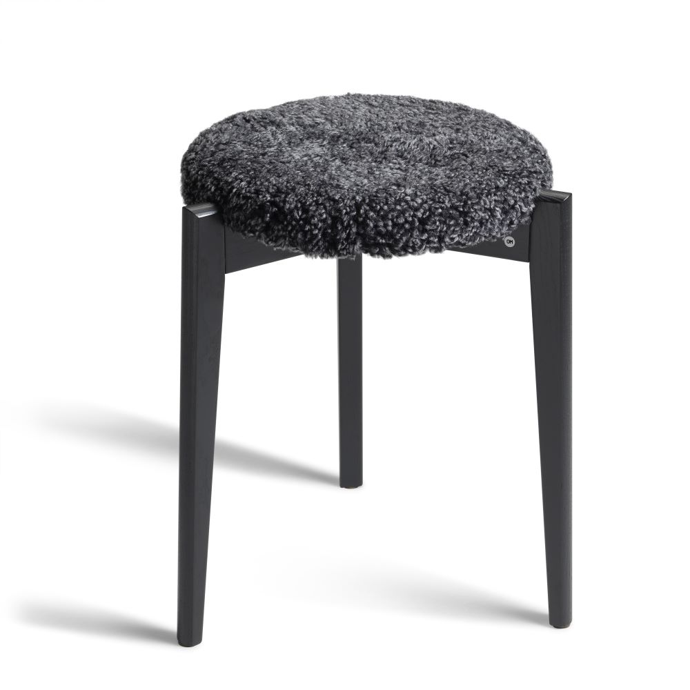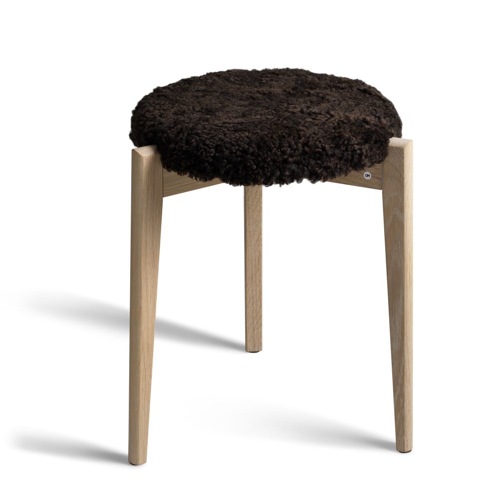 En effektfull pall, här i flera typer av fårskinn och träslag. Finns även med massiv träsits (se relaterade produkter nedan).