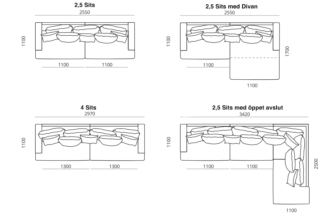 Chievo erbjuder inte bara en visuellt tilltalande estetik, utan också enastående komfort. Med generösa proportioner och flera lösa kuddar i ryggen bjuder den in till avkoppling och lugn. Varje säte är konstruerat för att erbjuda optimalt stöd och avlastning för att du ska kunna njuta av varje ögonblick av avkoppling.