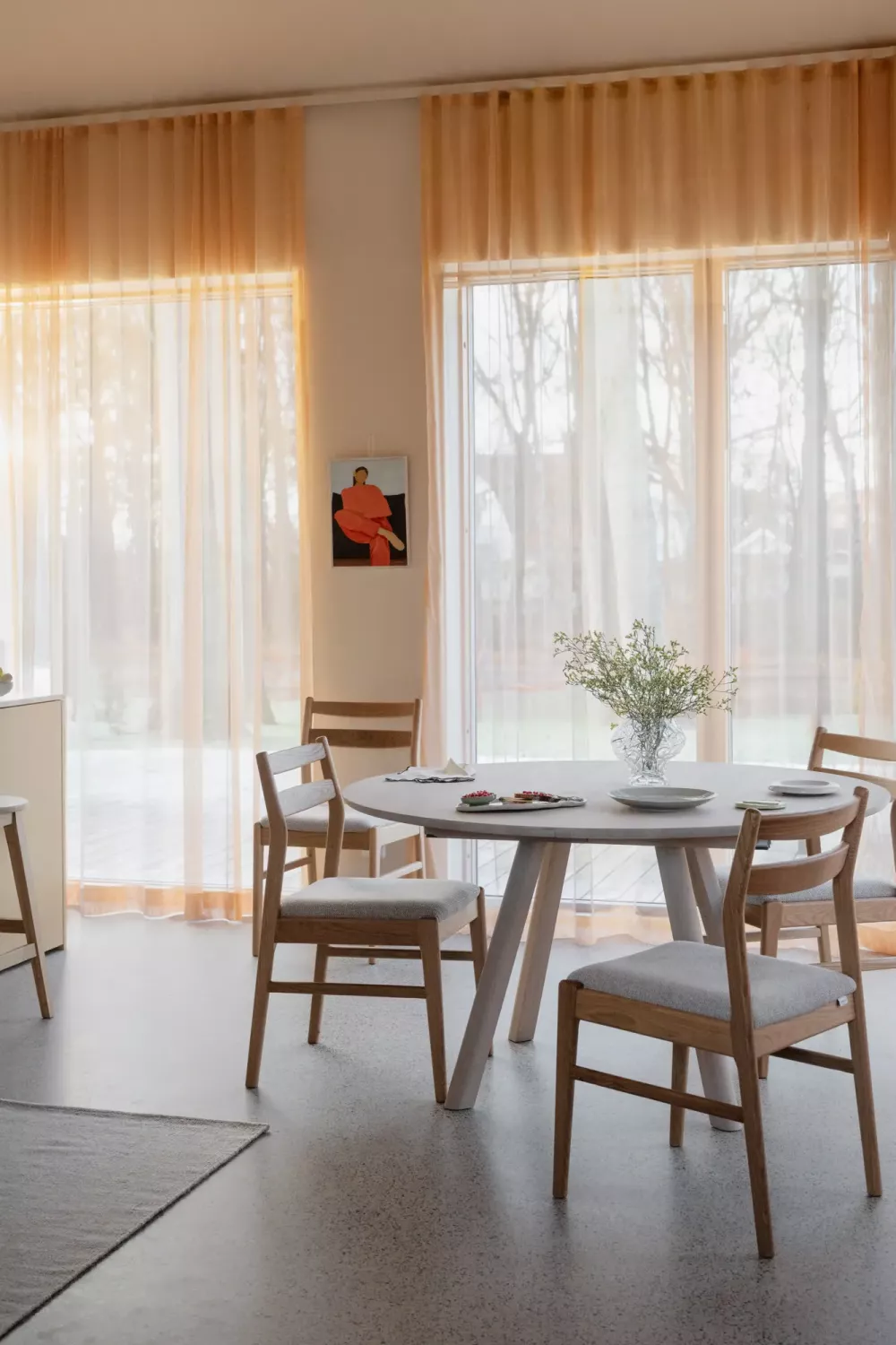 Kombinationen av raka linjer och mjuka former skapar en modern men tidlös design som håller över tid. Bordet är utformat för att passa olika typer av matstolar och inredningsstilar – från minimalistiskt skandinaviskt till mer ombonade miljöer.