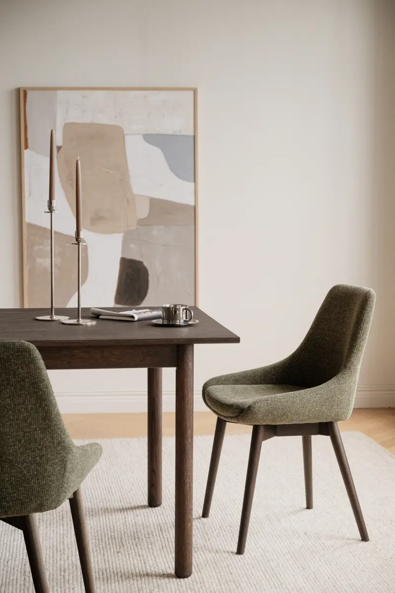- Grön: För dig som vill addera en dov färgklick. Den gröna textilen harmonierar vackert med både de brunlackade benen (för en jordnära känsla) och de vitpigmenterade benen (för en modernare stil).