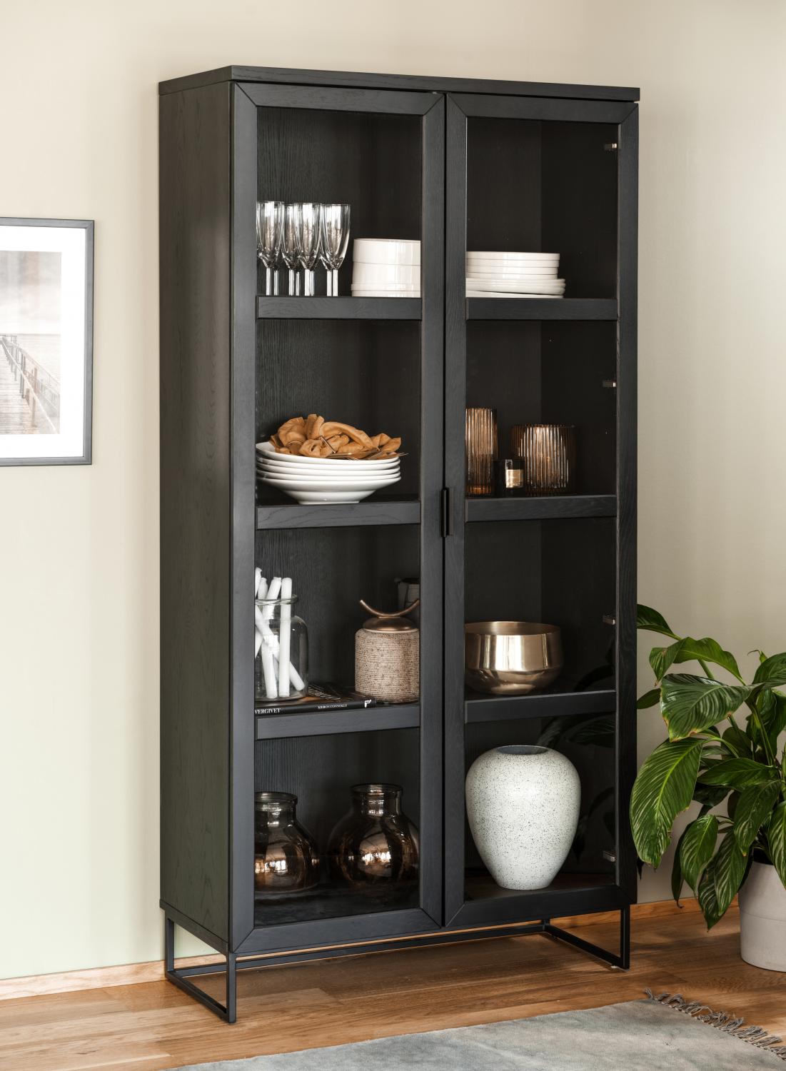 Everett Vitrin är inte bara tillgänglig i brunoljad massiv ek, utan också i vitpigmenterad och svart, vilket gör det möjligt för dig att välja den som passar bäst till din inredning. Oavsett vilken färg du väljer kommer detta möbelstycke att bli ett iögonfallande inslag i ditt hem och ge en känsla av tidlös skönhet och funktionalitet.