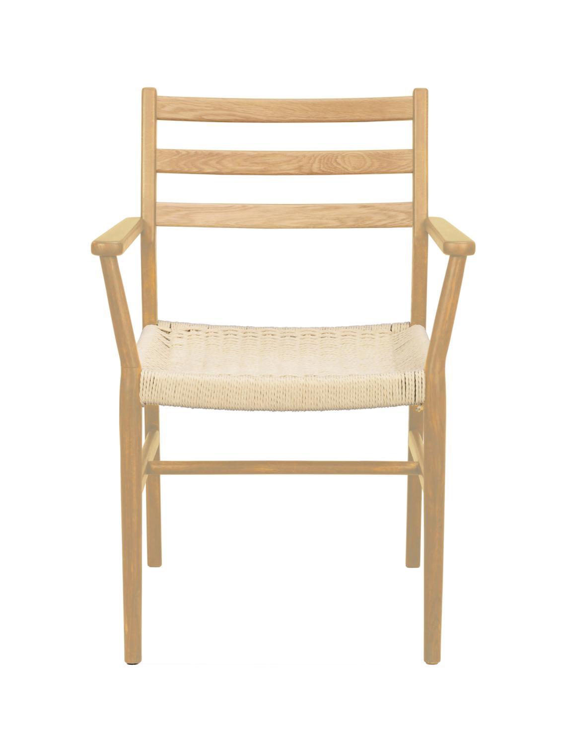 Harlan karmstol i massiv lackad brun ek och sits i flätat papperssnöre är inspirerad av en klassisk 50-60-tals design som fungerar år efter år.
