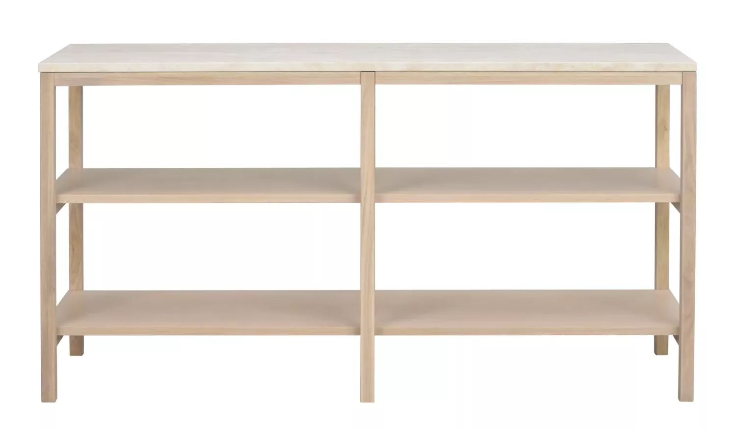 Orwel är ett exklusivt avlastningsbord med en sandfärgad stenskiva i äkta travertin från Italien, vackert kombinerad med en stomme i vitpigmenterad, FSC-certifierad ek. Den smala, avlånga formen (140 x 40 cm) gör bordet perfekt som avlastningsbord i hallen, som sideboard i sovrummet eller som stilren tv-bänk i vardagsrummet.