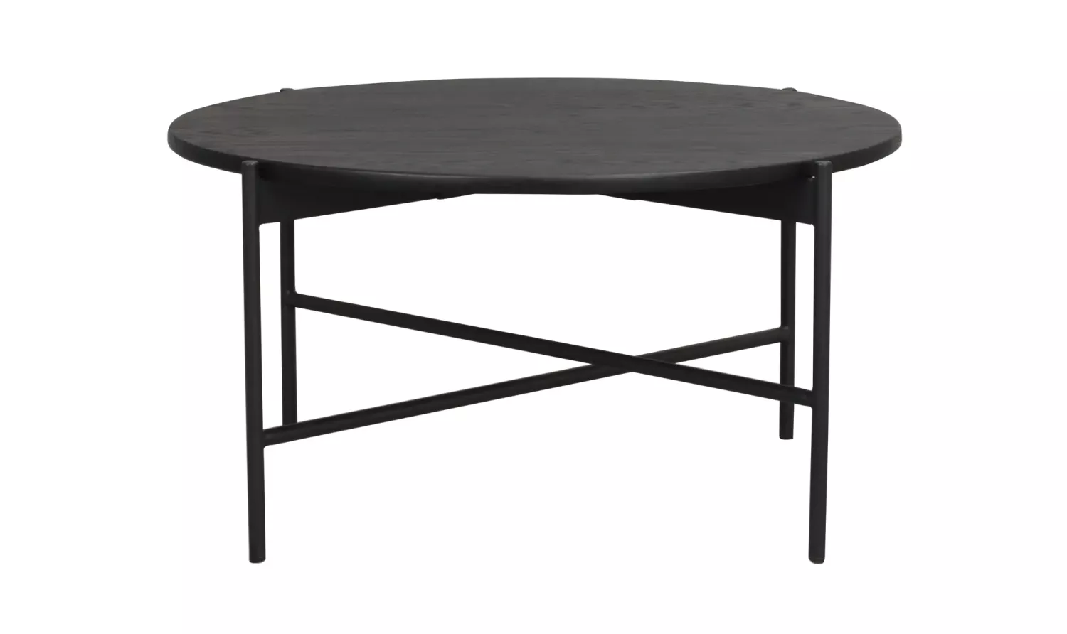 Skye runt soffbord i modern, stilren design. Skye har bordsskiva i borstad svartmålad ekfaner och ben i pulverlackerad metall.