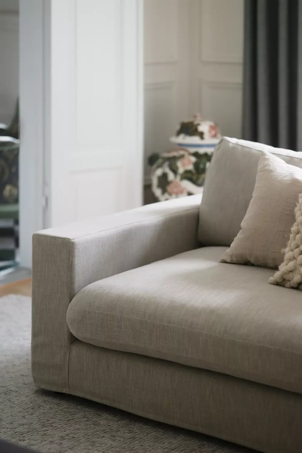 Alla plymåer är vändbara och har avtagbara tygöverdrag – en praktisk detalj som förlänger soffans livslängd. Även stommen är klädd med avtagbart tyg, vilket gör Langdon till ett smart val för hem där livet levs fullt ut. Tyget är dessutom maskintvättbart, perfekt för familjelivet och vardagens små missöden.