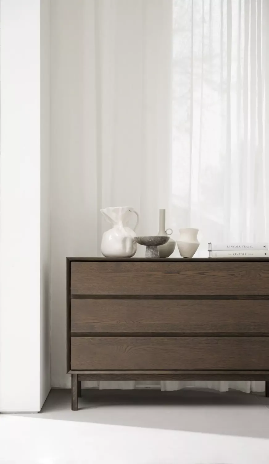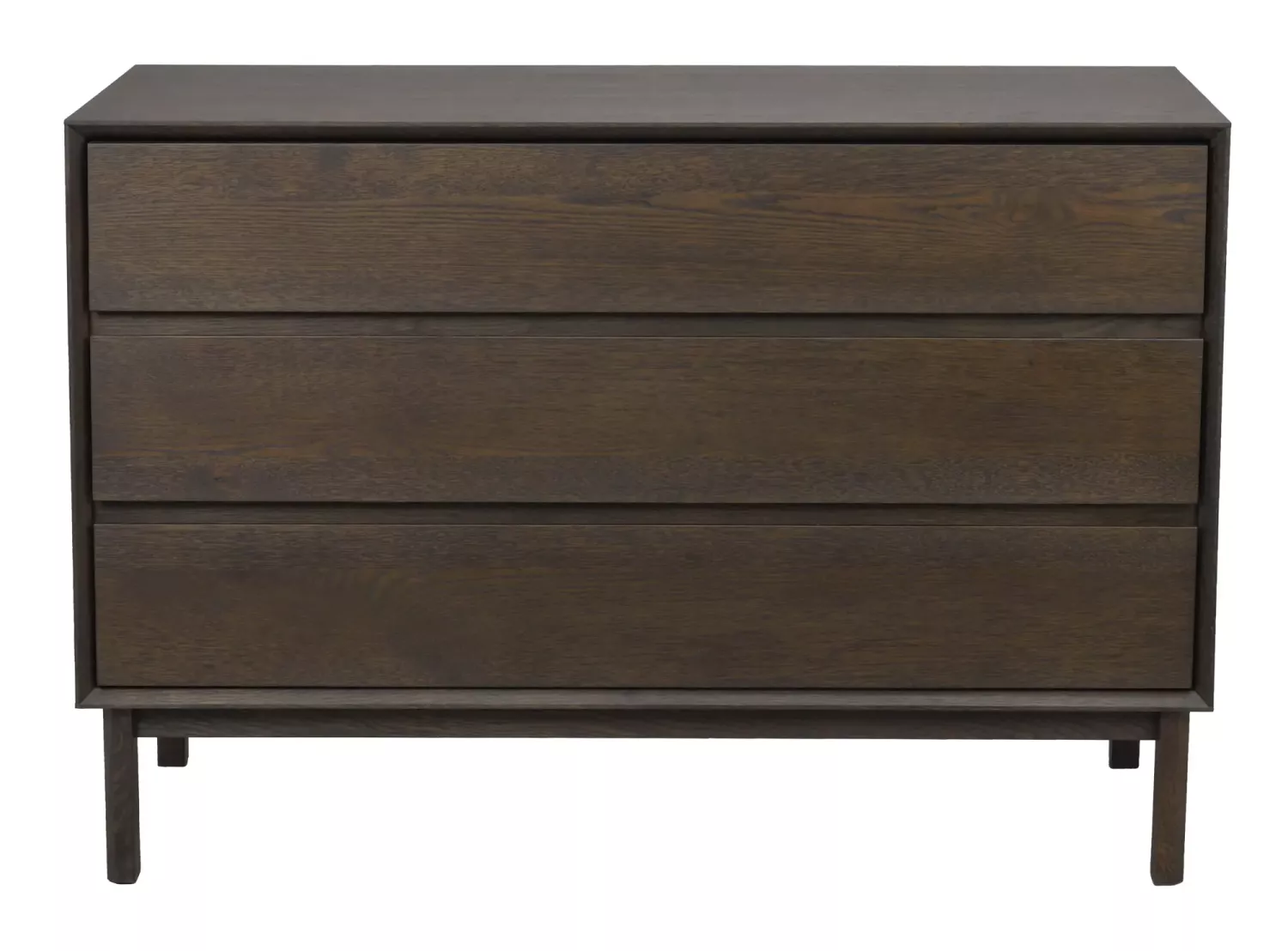 Byrån Mackay i vildek med 3 lådor är ett gediget hantverk med girade hörn och en inramning runt lådorna som skapar ett djup och ett härligt skuggspel på möbeln. Byrån är 110 cm bred och har en klassisk design med sina raka linjer, vilket gör den hållbar över tid. Passar lika bra i hallen som i sovrummet. Vildeken som byrån är tillverkad i bidrar till en intressant karaktär i möbelns yta. Mackay finns i tre olika storlekar. Trät i byrån är FSC®-certifierat och finns i alternativen oljad vildek och brunojad vildek.