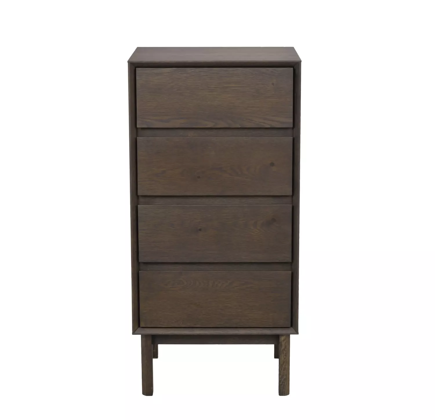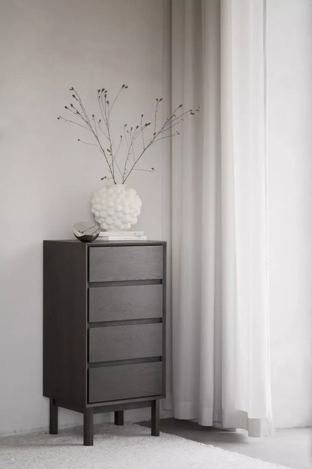 Byrån Mackay i oljad vildek med 4 lådor är ett gediget hantverk som kombinerar stil och funktionalitet. Med sina girade hörn och inramning runt lådorna skapar den ett elegant djup och vackert skuggspel. Den 45 cm breda byrån har en tidlös design med raka linjer, vilket gör den hållbar och lätt att matcha i olika rum, vare sig det är i hallen eller sovrummet. Mackay finns i tre olika storlekar och är tillverkad av FSC®-certifierat trä, tillgängligt i både oljad och brunoljebehandlad vildek.