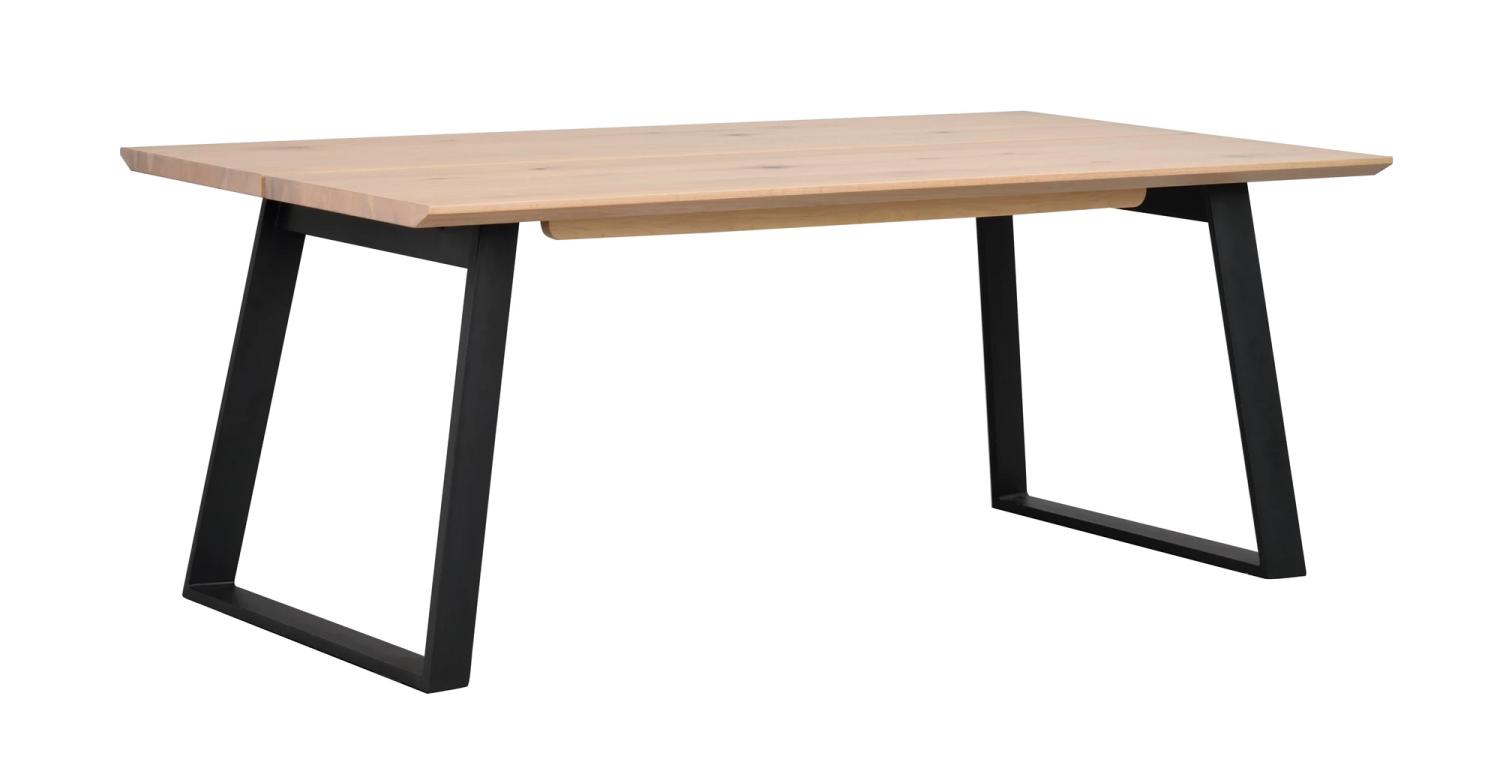 Moderna Melville matbord med tvådelad bordsskiva i vitpigmenterad ek och med svart stabilt metallunderrede. Bordsytan består av vildeksfaner vilket innebär att synliga kvistar och märken är en del av utseendet och gör varje möbel personlig. Bordet har massiva ekkanter för extra tåligthet och ger bordet ett gediget och massivt intryck. Bordet kan bli hela 310 cm långt tack vare tilläggsskivor som finns att köpa separat. I serien ingår även förvaring för en matchande helhet.